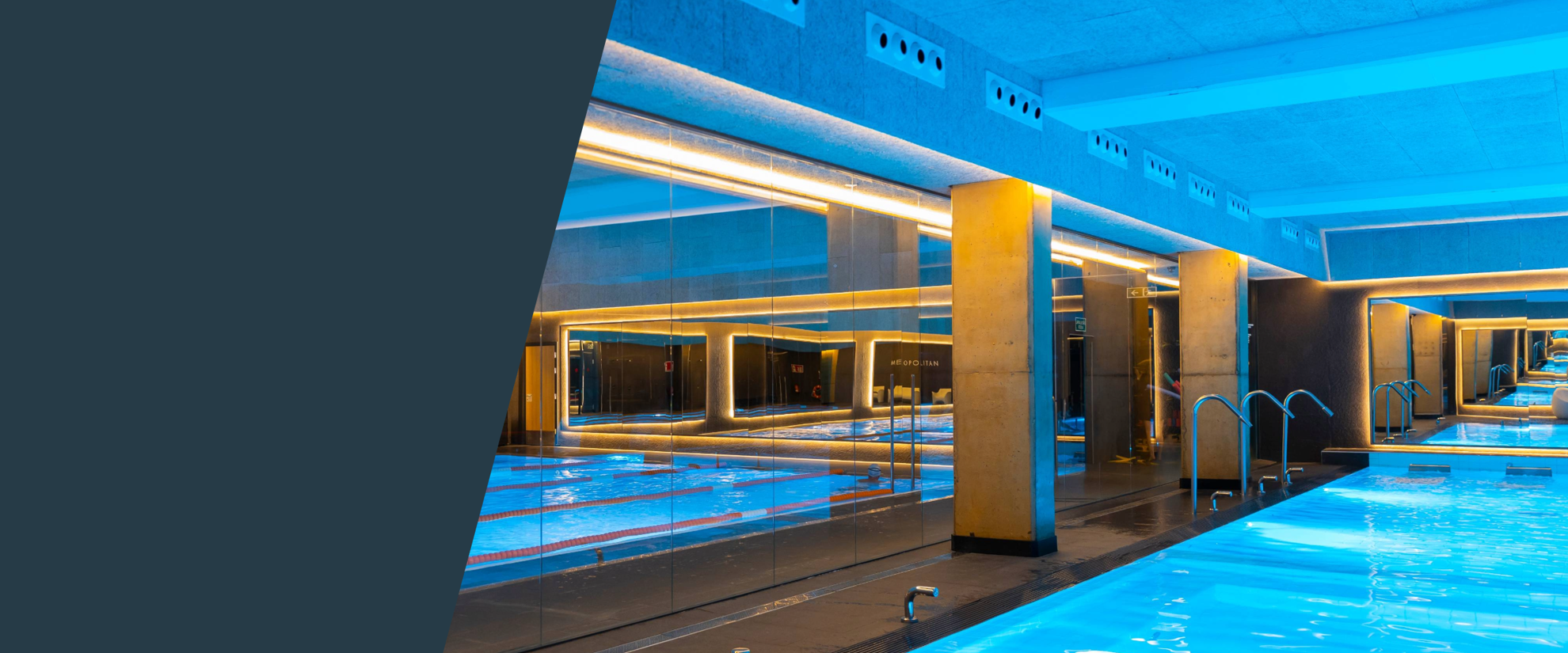 Überblick über die angebotenen Dienstleistungen, wie z.B. Schwimmkurse und Wellnessangebote.